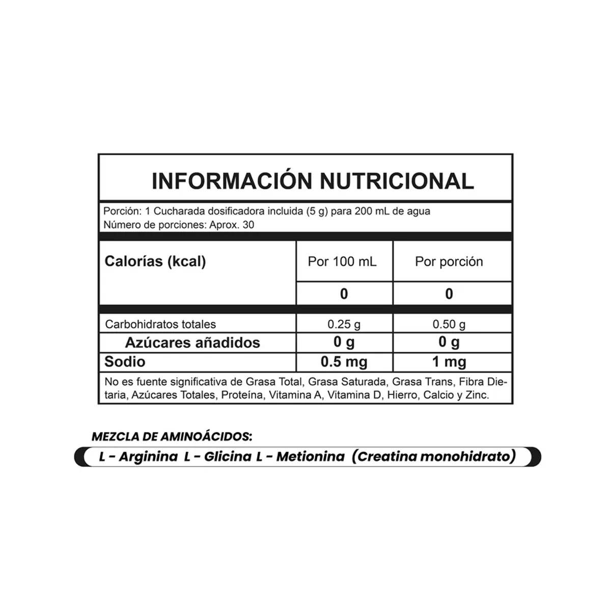 Su presentación de 150 g ofrece aproximadamente 30 porciones, lo que la convierte en una excelente alternativa para quienes desean mantener un consumo constante dentro de su plan deportivo. Al ser sin sabor, puedes mezclarla fácilmente con agua o con tu bebida habitual sin alterar demasiado el sabor.