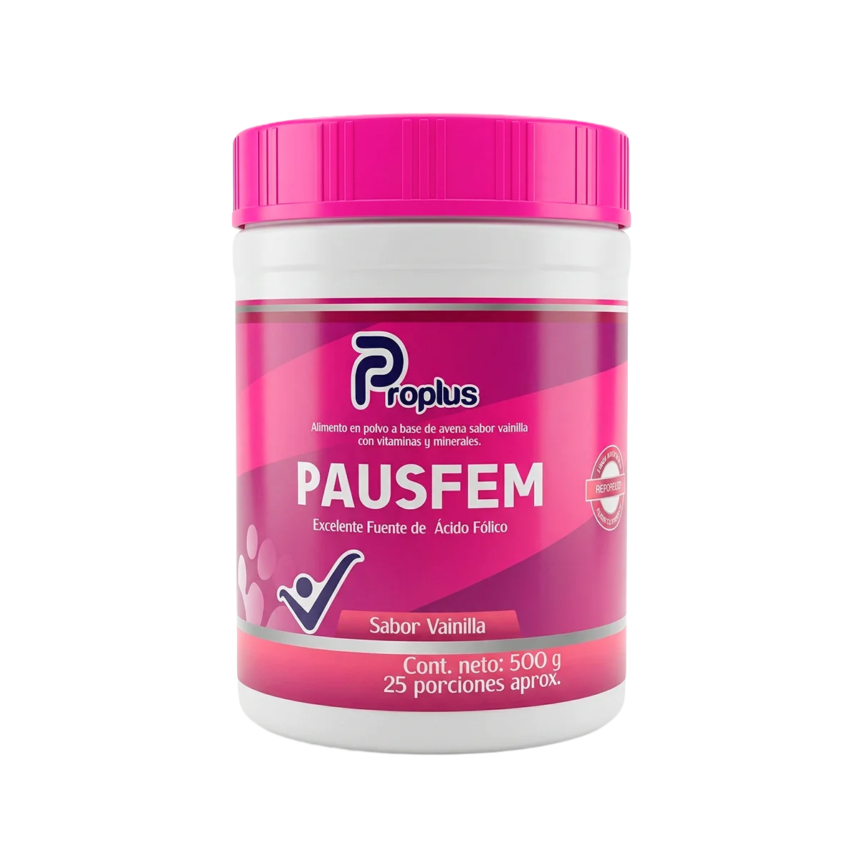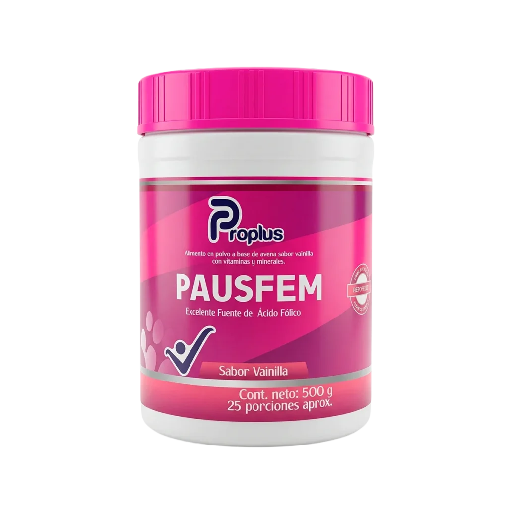 PAUSFEM Proplus es un alimento en polvo elaborado a base de avena y enriquecido con vitaminas, minerales y ácido fólico, nutrientes esenciales que ayudan a complementar la alimentación y apoyar el bienestar del organismo.