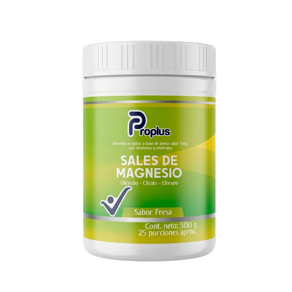 Sales de Magnesio Proplus es un suplemento en polvo que combina tres formas de magnesio: glicinato, citrato y cloruro, enriquecido con vitaminas y minerales para apoyar el bienestar general del organismo. Su fórmula ayuda a complementar la nutrición diaria, contribuyendo al funcionamiento muscular, nervioso y metabólico. Con agradable sabor fresa, es una forma práctica y deliciosa de incorporar magnesio a la rutina diaria.